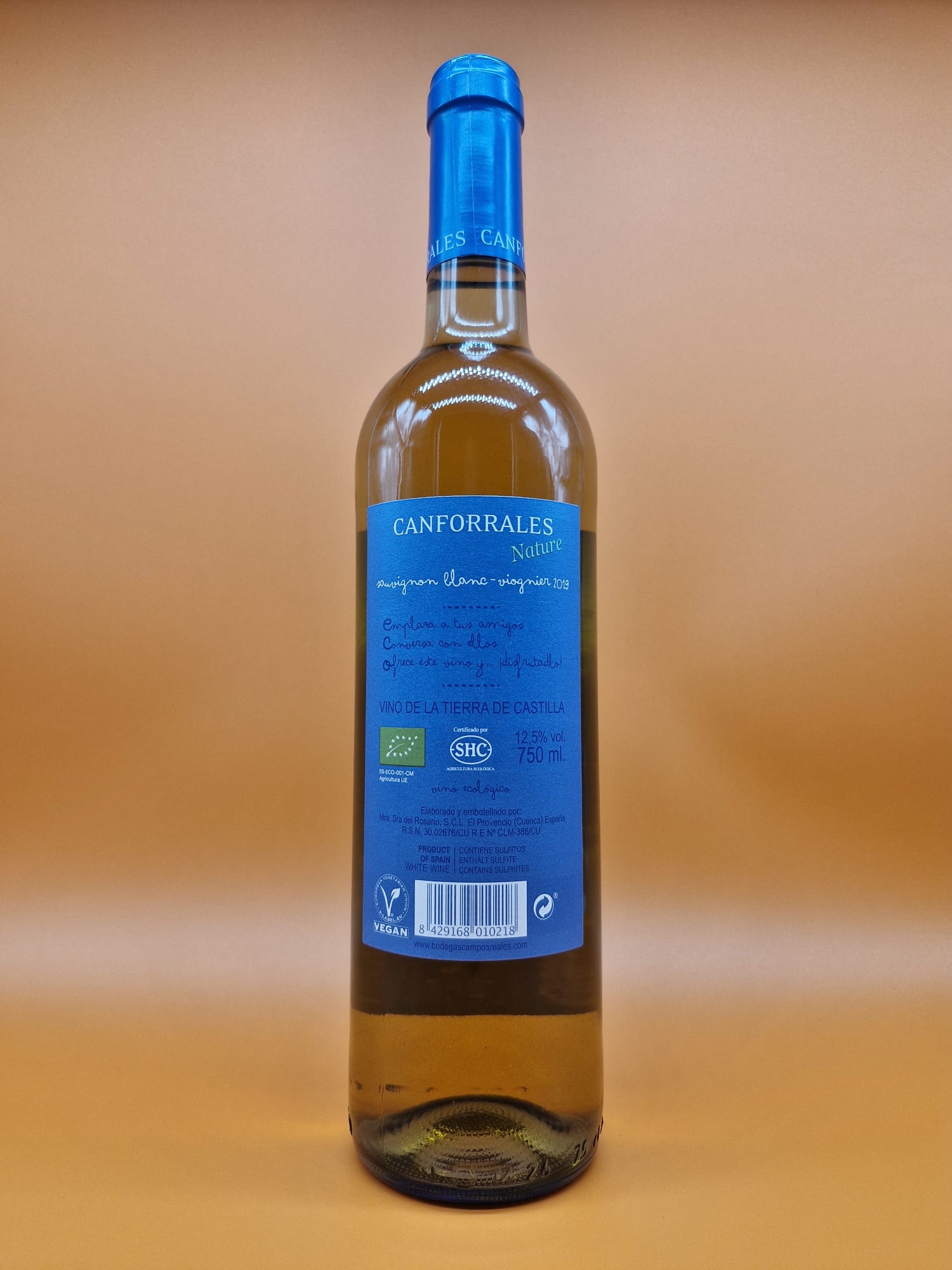 Vino blanco ecológico de la zona de La Mancha. Aromas frutales exóticos y equilibrado.